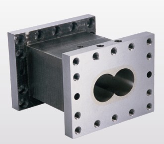 雙螺桿擠出機(jī)加工部件的另一個(gè)核心部分是機(jī)筒,目前大部分采用雙金屬型式,外殼體由45#鋼,經(jīng)鍛造,退火,然后機(jī)加工成,內(nèi)部由硬質(zhì)合金加工成“C“型套,由壓力機(jī)壓入后,磨加工成。由于直接接觸物料的是硬質(zhì)合金,它具有極高的硬度,因此耐磨性極高,且采用壓入式,因此便于更換,從而利于設(shè)備提高使用壽命,降低用戶的成本。