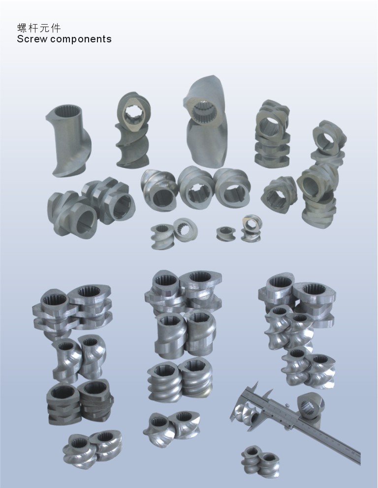 分離型螺桿是在熔融段附加螺紋或螺槽,它只能和原螺桿作成一體; 而屏障型螺桿、分流型螺桿多在均化段或熔融段來增設(shè)非螺紋形式的各種區(qū)段,稱為螺桿元件。螺桿元件可以與螺桿做成一體,也可以用連接的方法加到螺桿本體上。根據(jù)這些區(qū)段的作用不同,分別稱為輸送元件、壓縮元件、剪切元件、混煉元件、均化元件等。