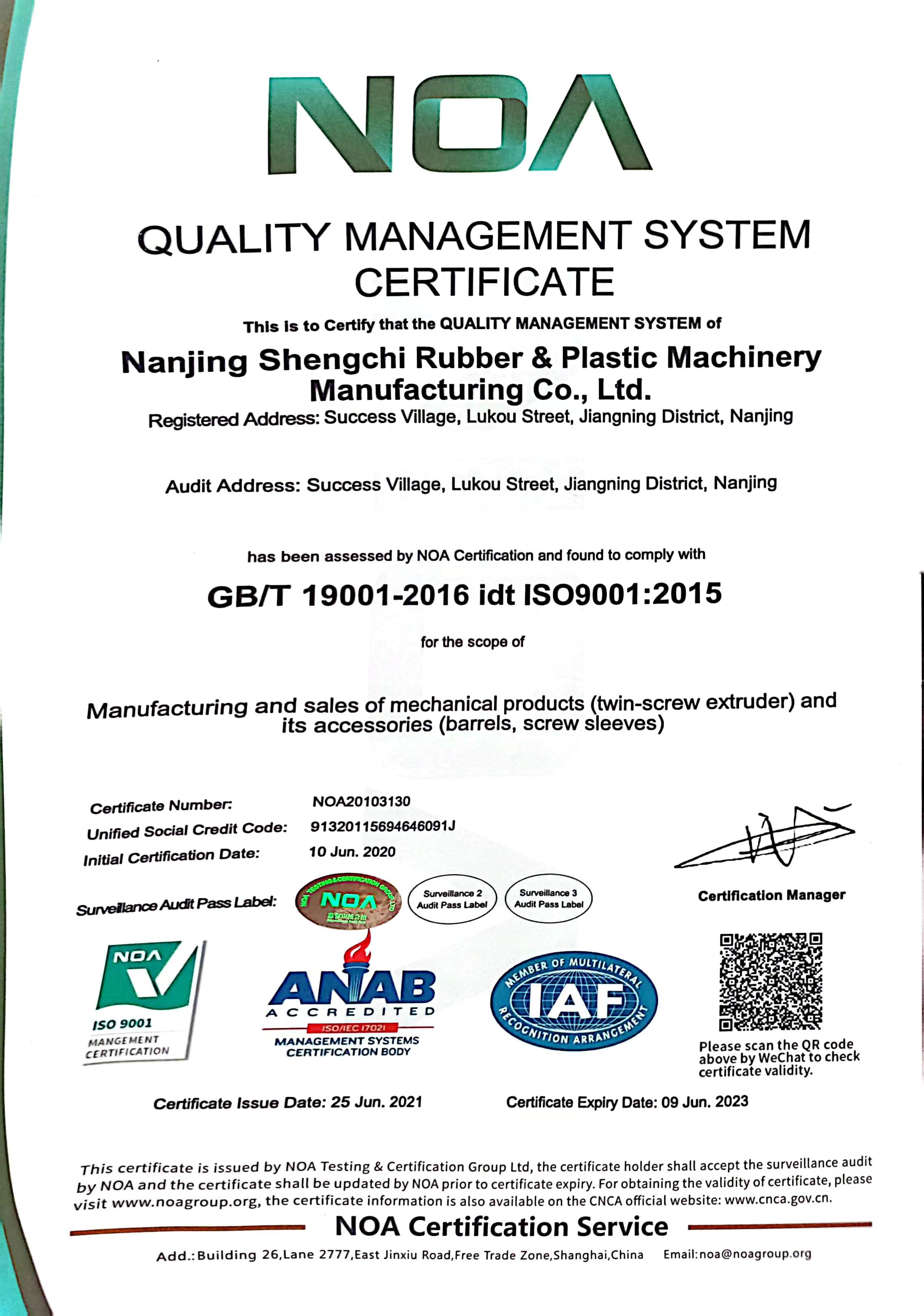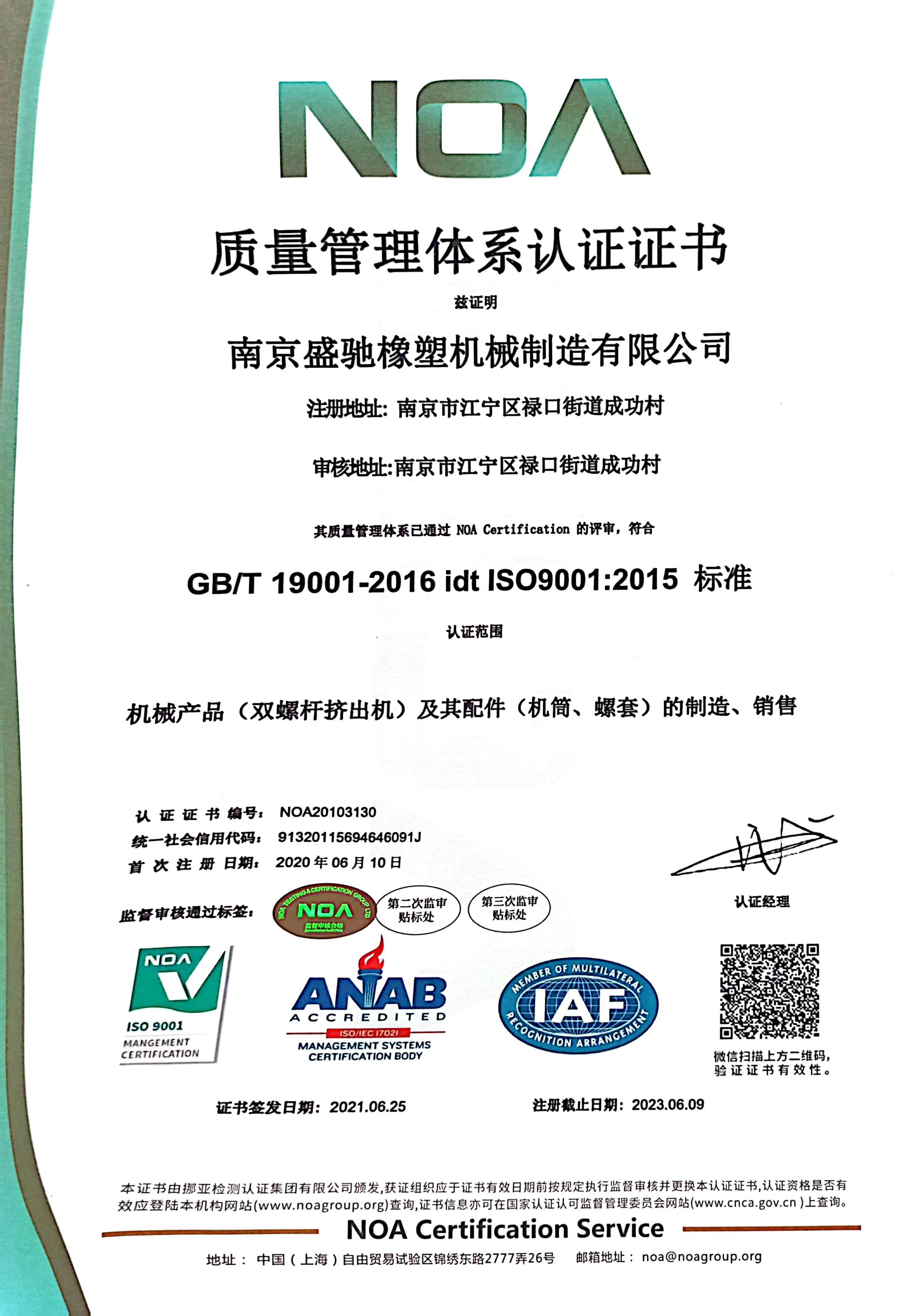 質(zhì)量管理體系認(rèn)證證書